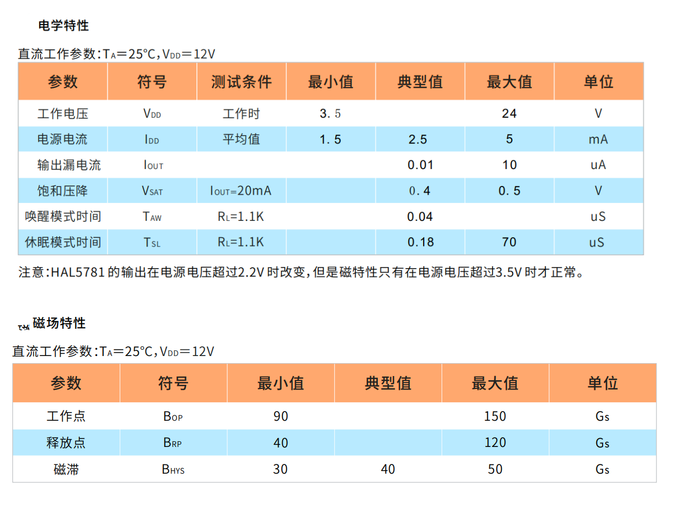 HAL5781是⼀款基于混合信号COMS技术的单极霍尔效应传感器IC。