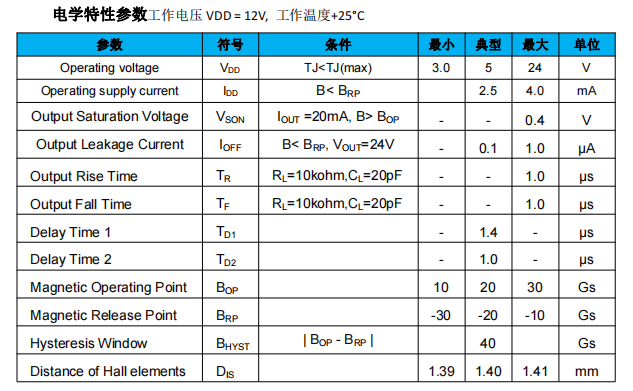 HAL1452是一款双通道输出霍尔传感器集成电路,芯片内部集成了2个相距1.4mm的霍尔传感器单元、电压调节器、信号放大器、温度补偿电路、施密特触发器,及两个开漏输出MOS管,分别进行速度和方向输出。这款IC采用了先进的斩波稳定技术,因而能够提供准确而稳定的磁开关点。因为HAL1452的宽工作电压和宽工作温度范围,使得它非常适合用于汽车、工业以及消费电子行业中。