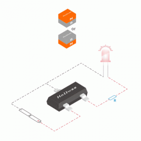 全极性霍尔开关不指定磁极感应,。 当磁铁(N极或S极磁场都可以)靠近时,它输出低电平,而当磁铁离开时,它输出高电平,这产生了不同的应用,例如磁性物质检测,接近开关,非接触式定位等。